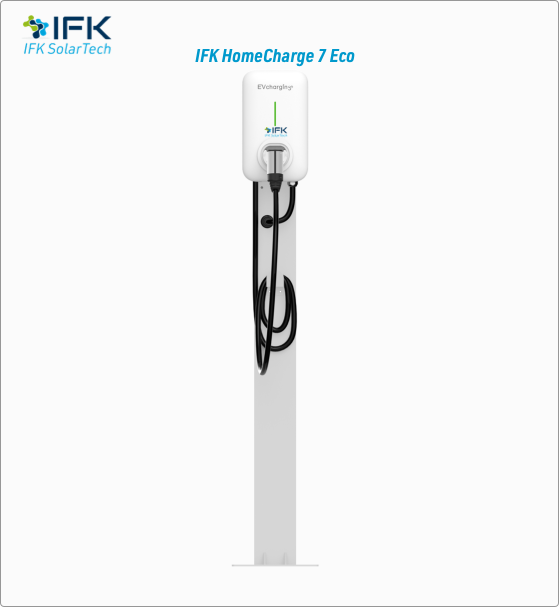 IFK HomeCharge 7 Eco (7.4 kW, Type 2) là bộ sạc xe điện dân dụng được thiết kế dành riêng cho các hộ gia đình sử dụng điện 1 pha. Với công suất 7.4 kW, sản phẩm đáp ứng hầu hết các dòng xe điện phổ biến tại Việt Nam (VinFast, BYD, MG, Hyundai, Kia…), giúp người dùng sạc nhanh – an toàn – tiện lợi ngay tại nhà.